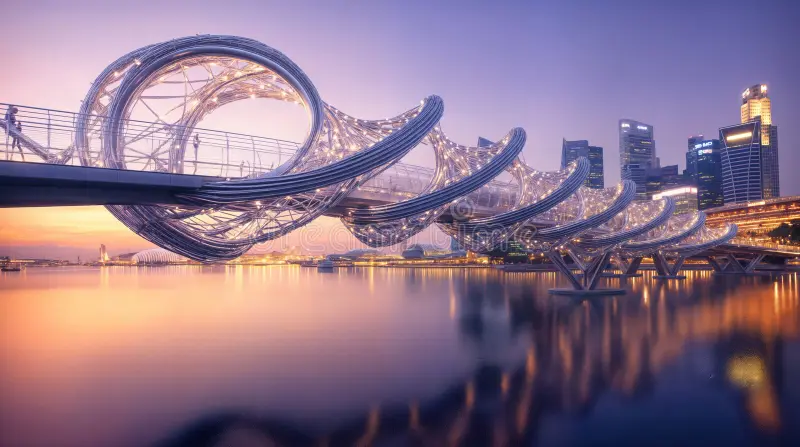 At night, joggers, couples, and photographers make their way across the bridge, capturing long-exposure shots or simply enjoying the soft light and cool breeze. The Helix Bridge serves as a link between major attractions while also offering a tranquil pause amidst the urban buzz.